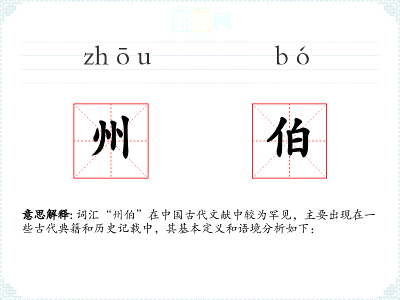 - 文学语境:在古代文学作品中,如《诗经》、《左传》等,州伯可能作为历史人物或象征性角色出现,代表地方权威和秩序。