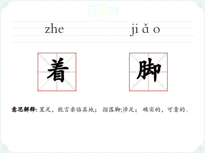 置足,犹言亲临其地; 指落脚;涉足; 确实的,可靠的。