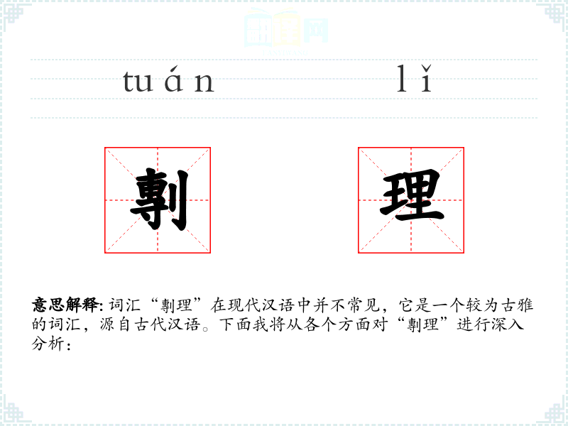 词汇“剸理”在现代汉语中并不常见,它是一个较为古雅的词汇,源自古代汉语。下面我将从各个方面对“剸理”进行深入分析: