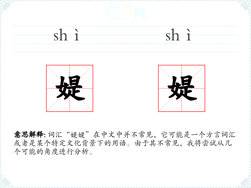 由于“媞媞”不是一个常见的词汇,对其的理解和应用非常有限。它可能是一个方言词汇或者是某个特定文化背景下的用语,需要更多的语境信息才能准确理解其含义。在语言学习和表达中,了解和掌握常见词汇更为重要。
