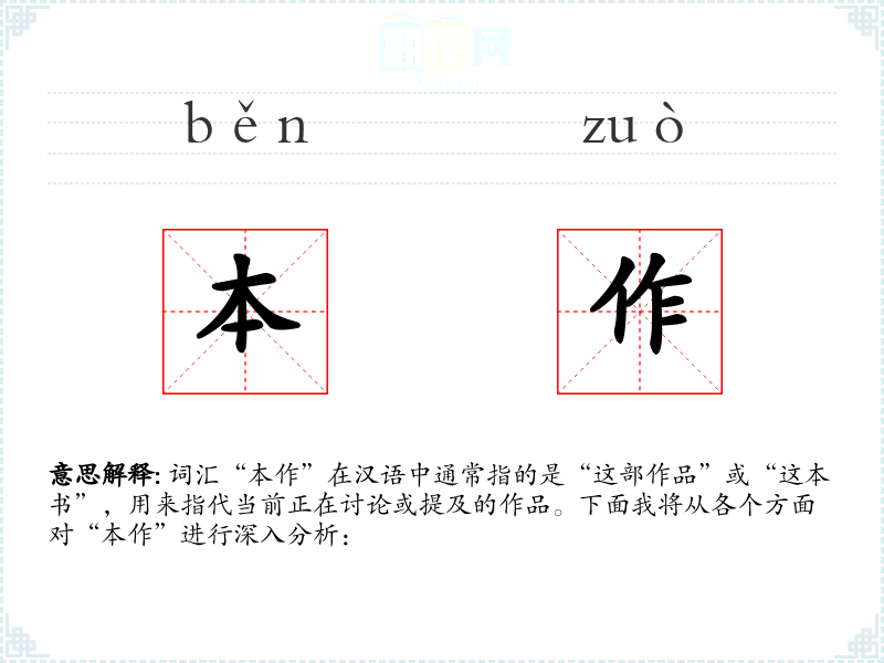- 反义词:不适用,因为“本作”是一个特定的指代词,没有直接的反义词。