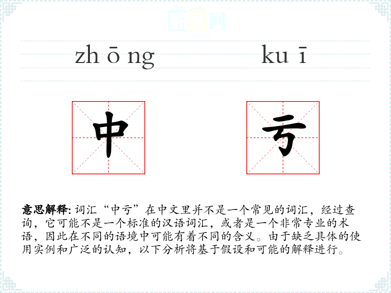词汇“中亏”在中文里并不是一个常见的词汇,经过查询,它可能不是一个标准的汉语词汇,或者是一个非常专业的术语,因此在不同的语境中可能有着不同的含义。由于缺乏具体的使用实例和广泛的认知,以下分析将基于假设和可能的解释进行。