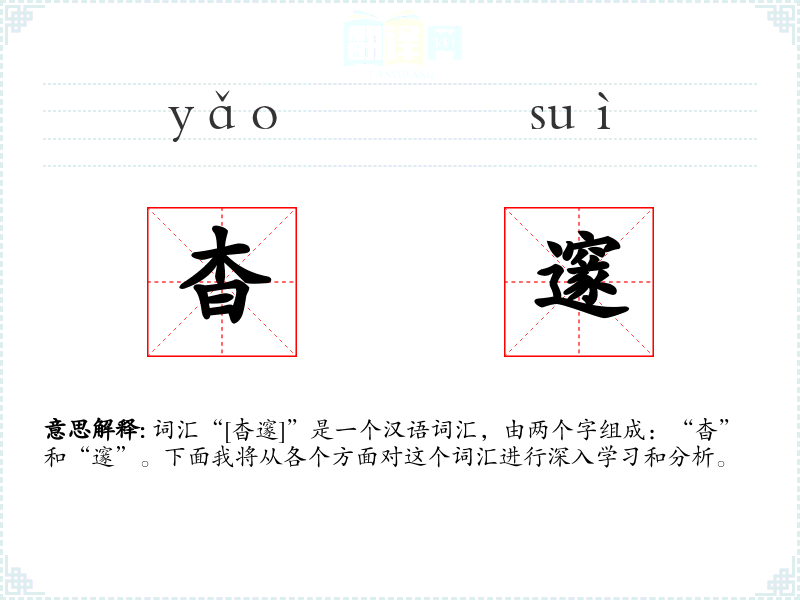 - 词源:“杳”和“邃”都是古代汉语词汇,有着悠久的历史。