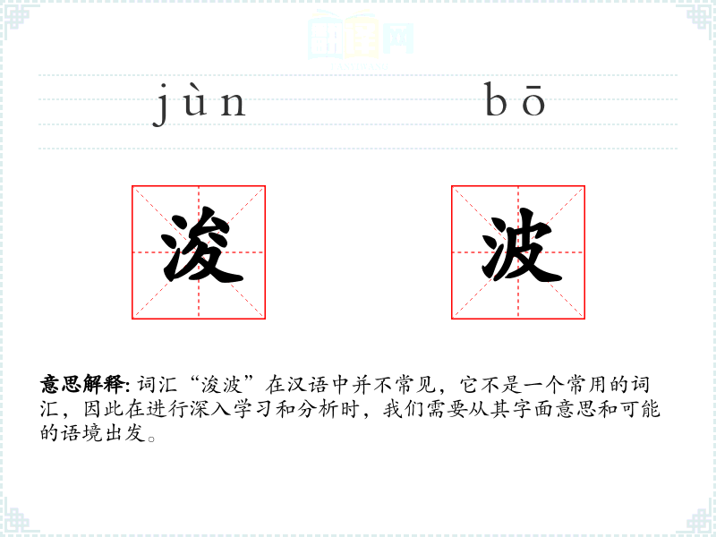 词汇“浚波”在汉语中并不常见,它不是一个常用的词汇,因此在进行深入学*和分析时,我们需要从其字面意思和可能的语境出发。