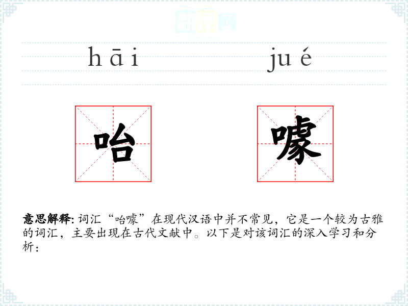 词汇“咍噱”在现代汉语中并不常见,它是一个较为古雅的词汇,主要出现在古代文献中。以下是对该词汇的深入学*和分析: