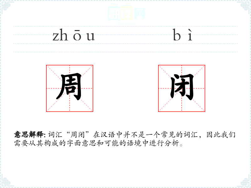 词汇“周闭”在汉语中并不是一个常见的词汇,因此我们需要从其构成的字面意思和可能的语境中进行分析。