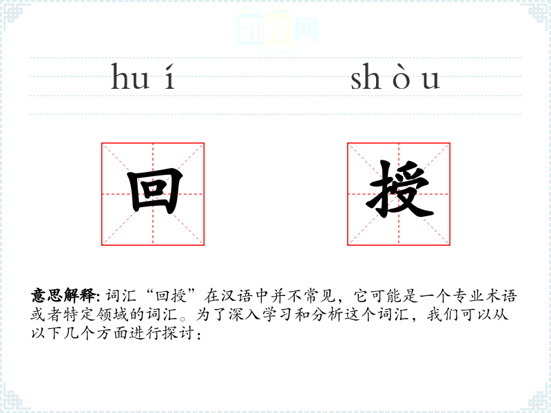词汇“回授”在汉语中并不常见,它可能是一个专业术语或者特定领域的词汇。为了深入学习和分析这个词汇,我们可以从以下几个方面进行探讨: