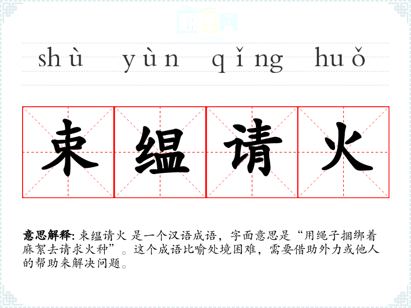 在英语中,类似的表达可能是 "beg for help" 或 "ask for assistance",但这些表达没有 束缊请火 那样的形象和深刻的文化内涵。