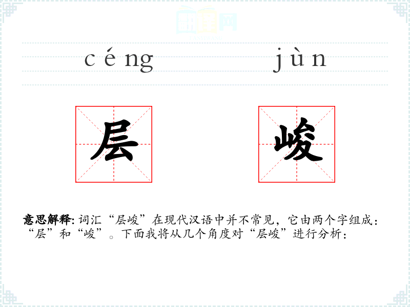 结合起来,“层峻”可以理解为形容事物层次分明且高耸陡峭的样子。