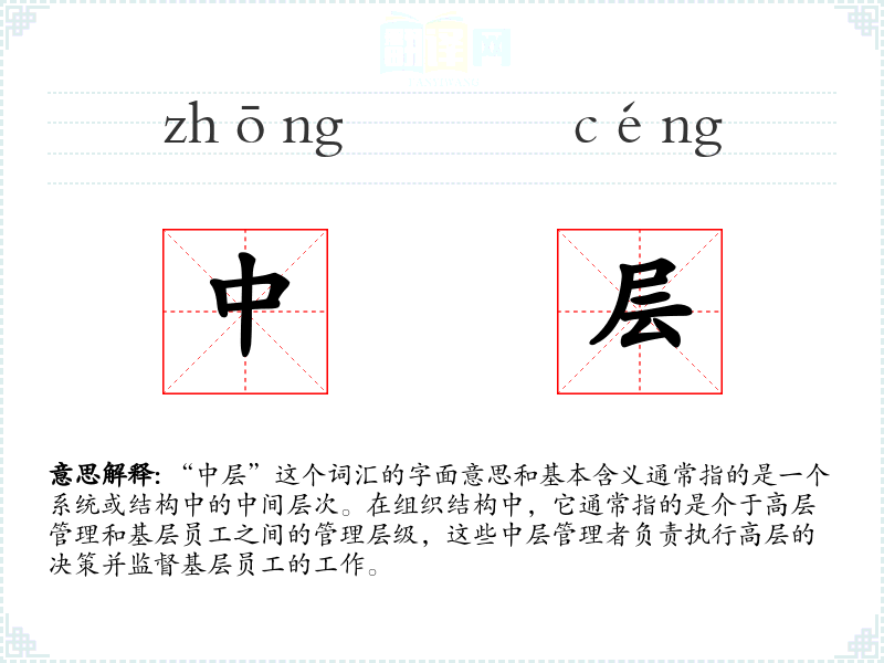 - 专业领域:在管理学或组织行为学中,“中层”是一个重要的概念,涉及到中层管理者的角色和功能。