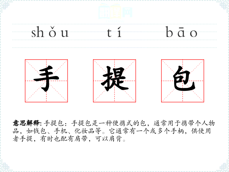"手提包"的意思解释、手提包是什么意思由翻译网汉语词典查词提供。