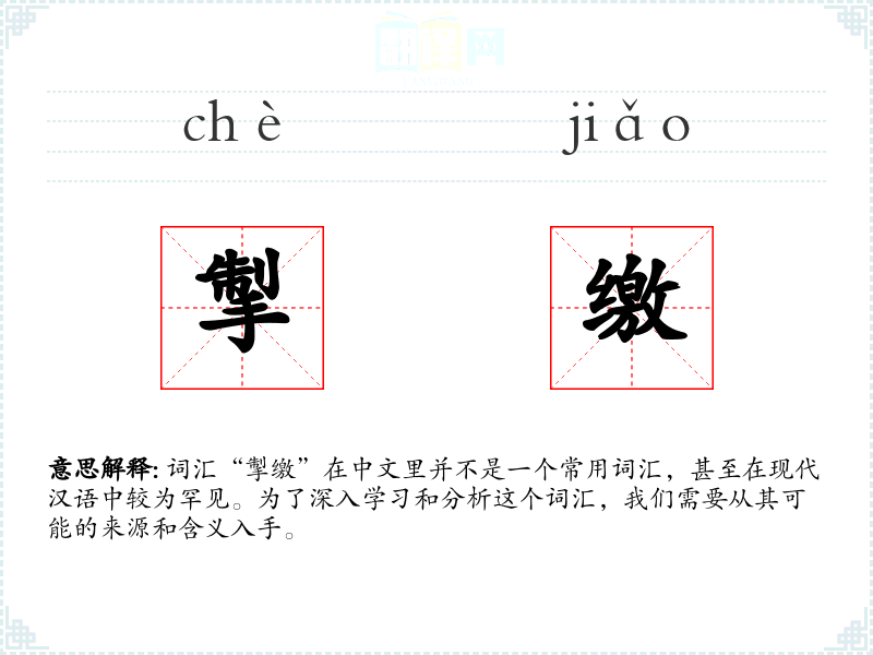 词汇“掣缴”在中文里并不是一个常用词汇,甚至在现代汉语中较为罕见。为了深入学习和分析这个词汇,我们需要从其可能的来源和含义入手。