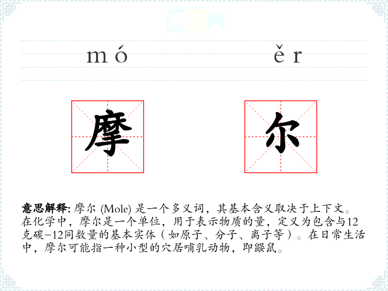摩尔 (Mole) 是一个多义词,其基本含义取决于上下文。在化学中,摩尔是一个单位,用于表示物质的量,定义为包含与12克碳-12同数量的基本实体(如原子、分子、离子等)。在日常生活中,摩尔可能指一种小型的穴居哺乳动物,即鼹鼠。