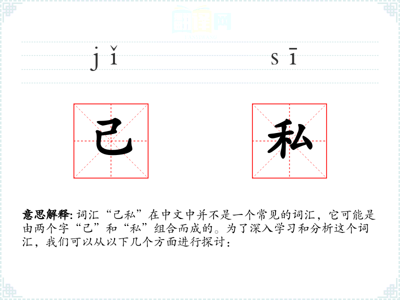 词汇“己私”在中文中并不是一个常见的词汇,它可能是由两个字“己”和“私”组合而成的。为了深入学*和分析这个词汇,我们可以从以下几个方面进行探讨: