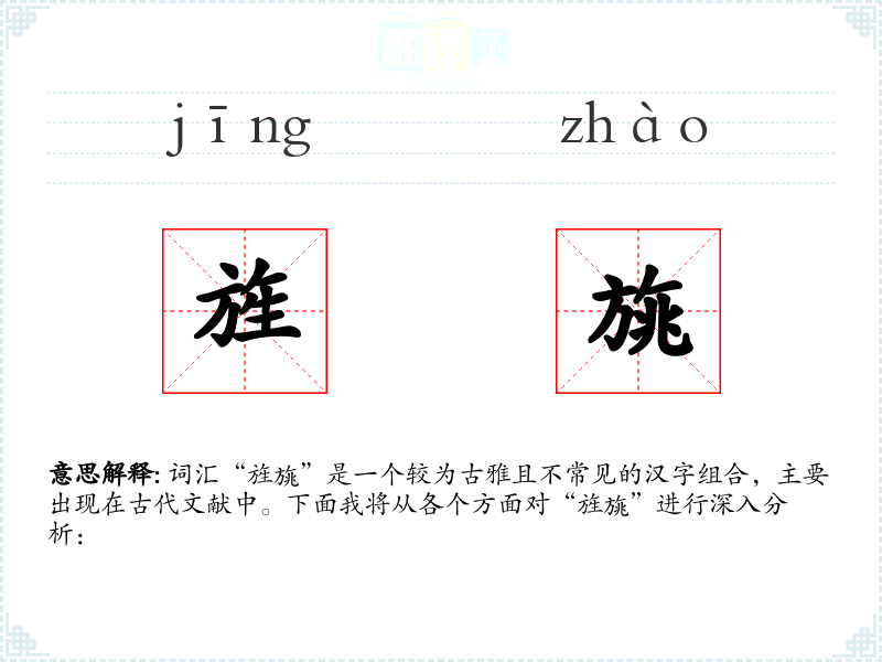 词汇“旌旐”是一个较为古雅且不常见的汉字组合,主要出现在古代文献中。下面我将从各个方面对“旌旐”进行深入分析: