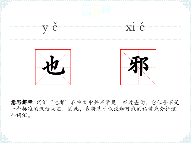 由于“也邪”不是一个标准词汇,我们可以尝试从字面意思来解释: