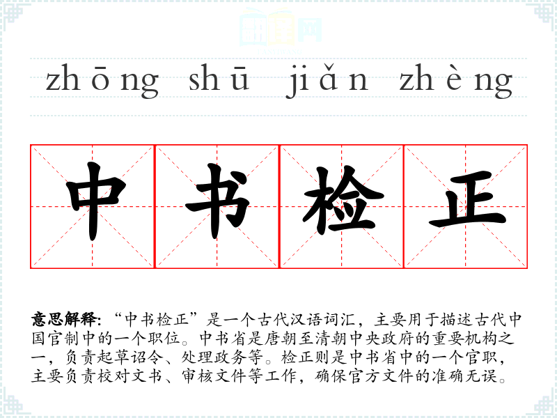 中书检正的意思