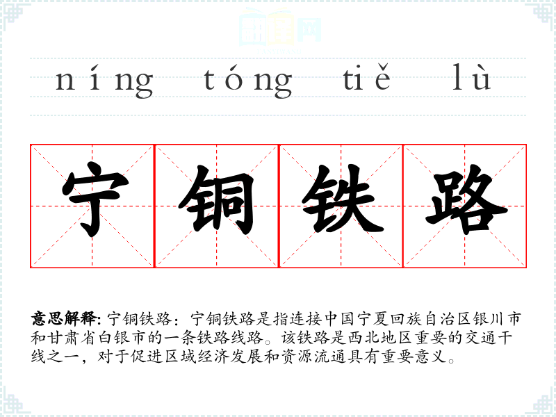 宁铜铁路的名称来源于其连接的两个主要城市:宁夏的银川和甘肃的白银。随着铁路的建设和运营,该词汇逐渐被广泛使用,成为特定地理和交通网络的代名词。