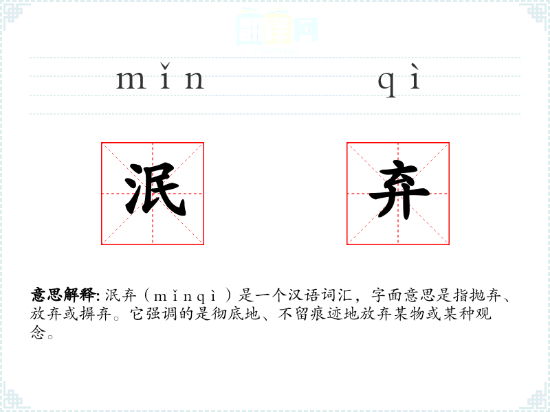 泯字源自古代汉语,意为消失、灭绝。弃字则意为放弃、抛弃。两个字组合在一起,强调的是彻底的放弃。