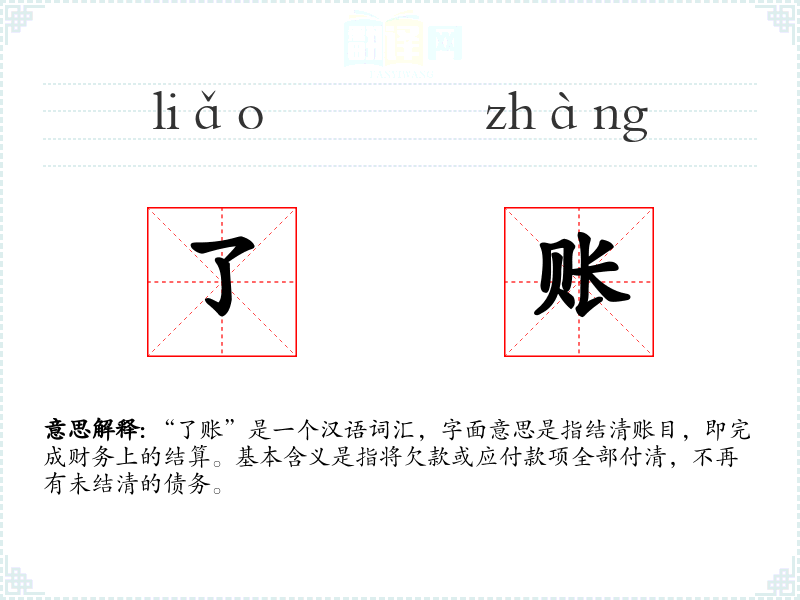 - 专业领域:在会计或金融领域,“了账”指的是完成账目的核对和结算,确保所有交易都已正确记录并结清。