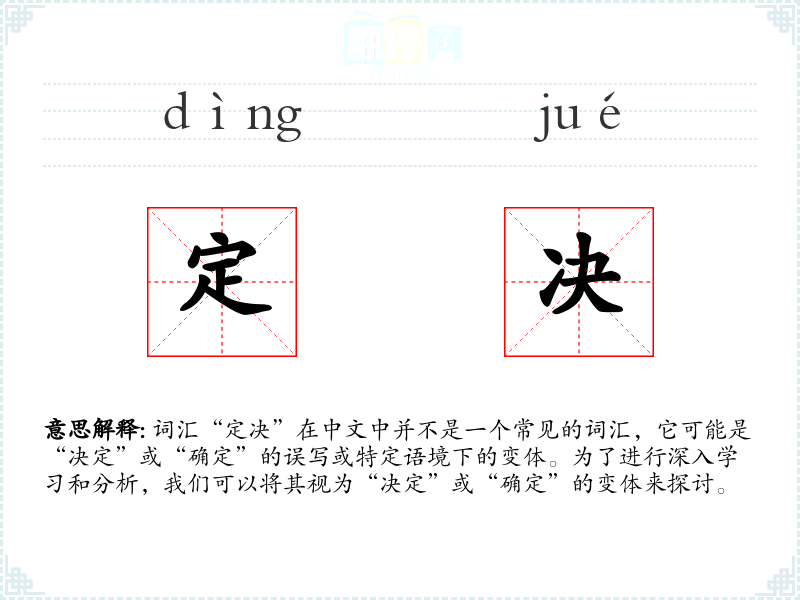 词汇“定决”在中文中并不是一个常见的词汇,它可能是“决定”或“确定”的误写或特定语境下的变体。为了进行深入学*和分析,我们可以将其视为“决定”或“确定”的变体来探讨。