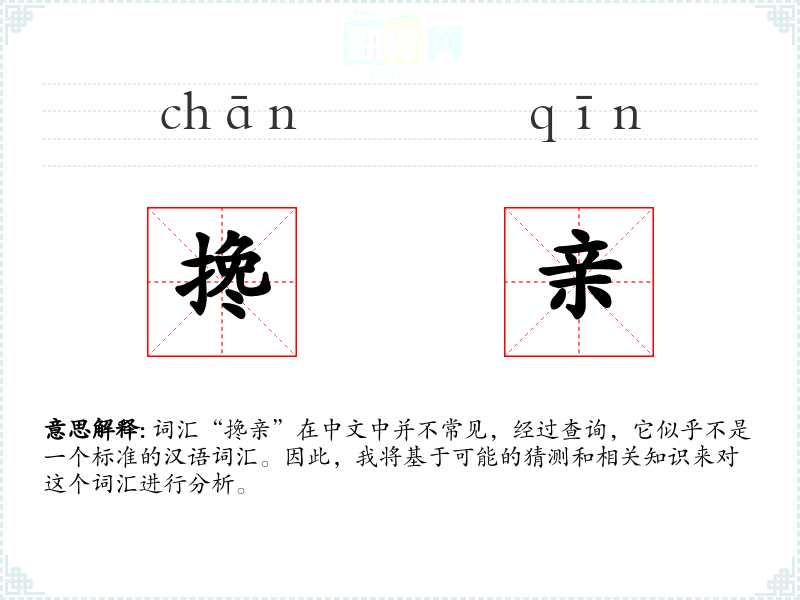 词汇“搀亲”在中文中并不常见,经过查询,它似乎不是一个标准的汉语词汇。因此,我将基于可能的猜测和相关知识来对这个词汇进行分析。