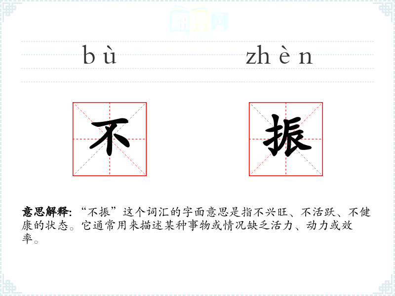 "不振"的意思解释、不振是什么意思由翻译网汉语词典查词提供。