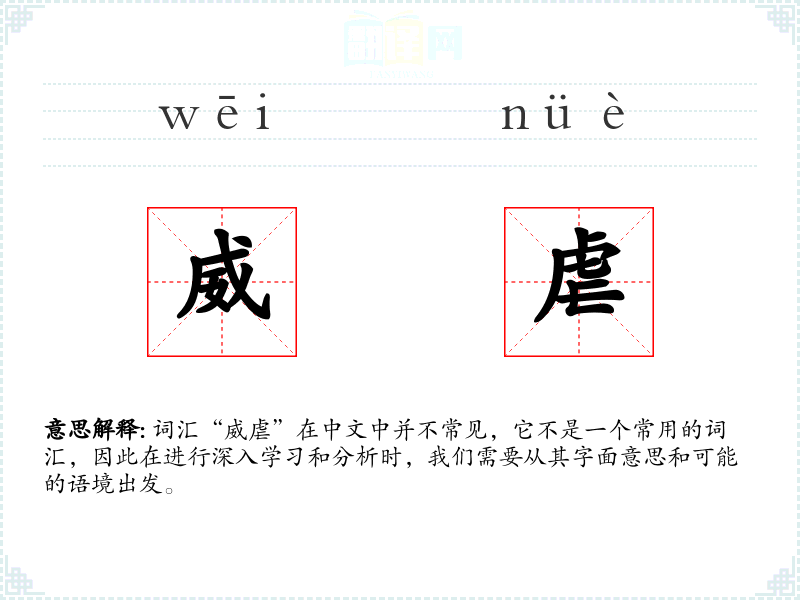 词汇“威虐”在中文中并不常见,它不是一个常用的词汇,因此在进行深入学习和分析时,我们需要从其字面意思和可能的语境出发。
