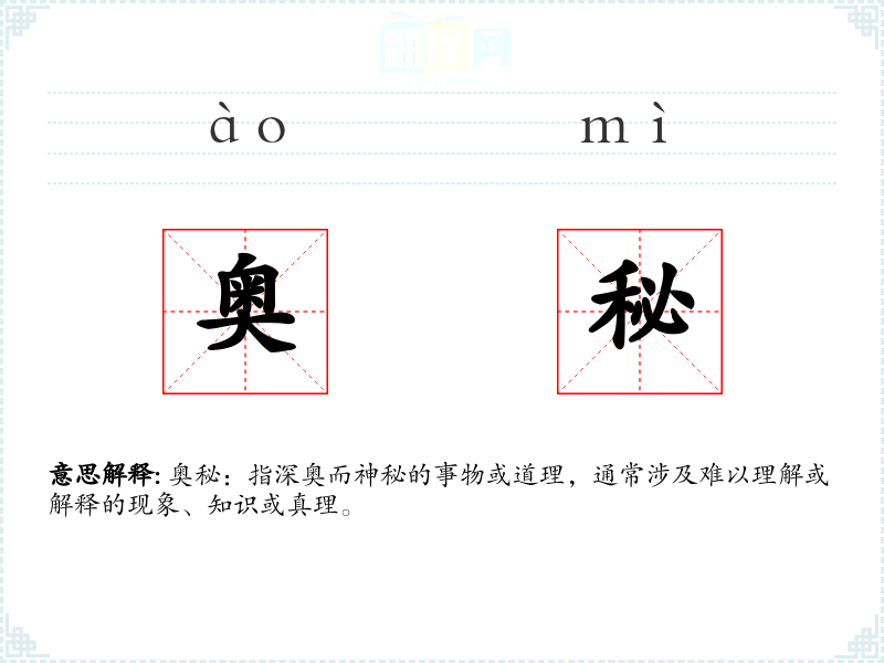 奥秘:指深奥而神秘的事物或道理,通常涉及难以理解或解释的现象、知识或真理。