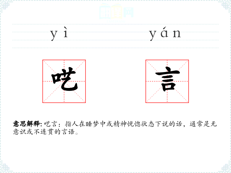 呓言:指人在睡梦中或精神恍惚状态下说的话,通常是无意识或不连贯的言语。