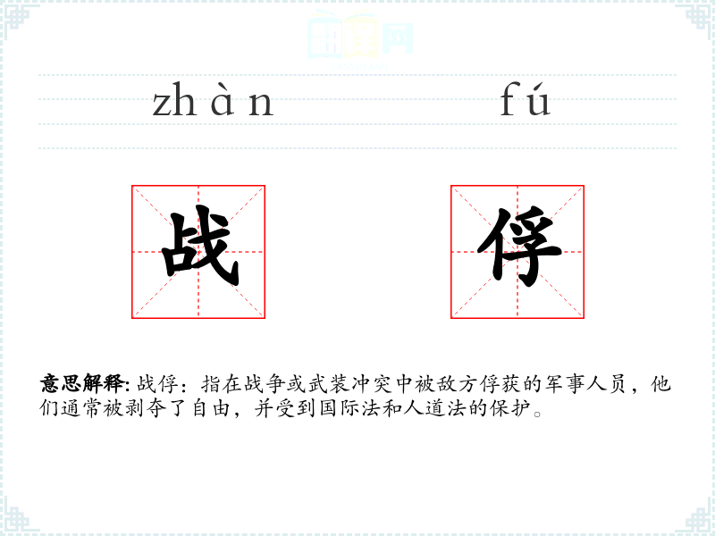 - 反义词:自由人、战士(指未被俘的军事人员)