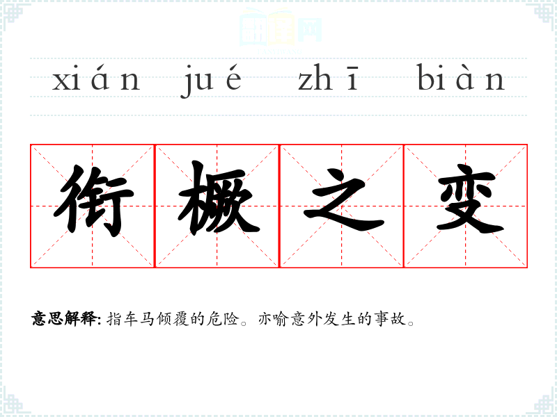 指车马倾覆的危险。亦喻意外发生的事故。