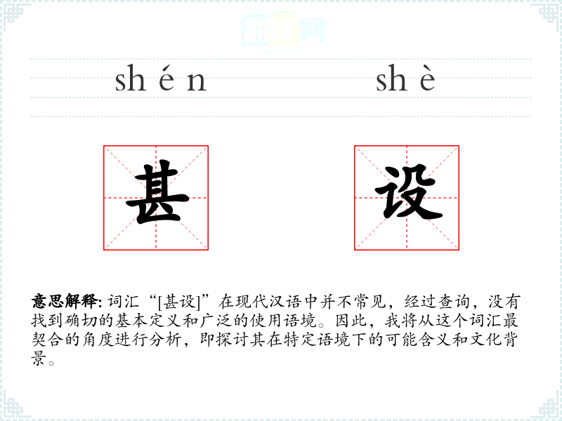 词汇“[甚设]”在现代汉语中并不常见,经过查询,没有找到确切的基本定义和广泛的使用语境。因此,我将从这个词汇最契合的角度进行分析,即探讨其在特定语境下的可能含义和文化背景。