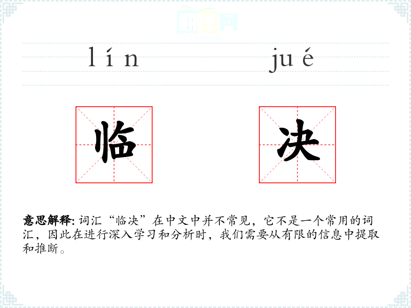 词汇“临决”在中文中并不常见,它不是一个常用的词汇,因此在进行深入学习和分析时,我们需要从有限的信息中提取和推断。
