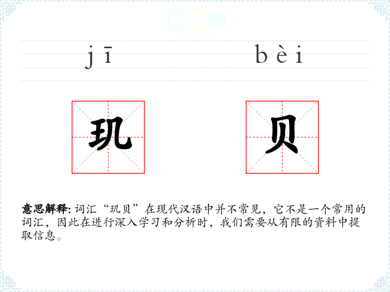 词汇“玑贝”在现代汉语中并不常见,它不是一个常用的词汇,因此在进行深入学*和分析时,我们需要从有限的资料中提取信息。