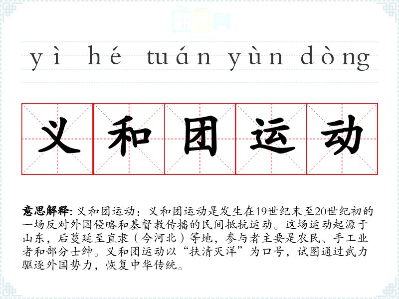 "义和团运动"的意思解释、义和团运动是什么意思由翻译网汉语词典查词提供。