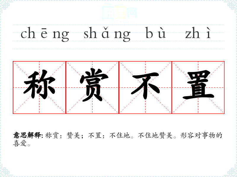 称赏:赞美;不置:不住地。不住地赞美。形容对事物的喜爱。