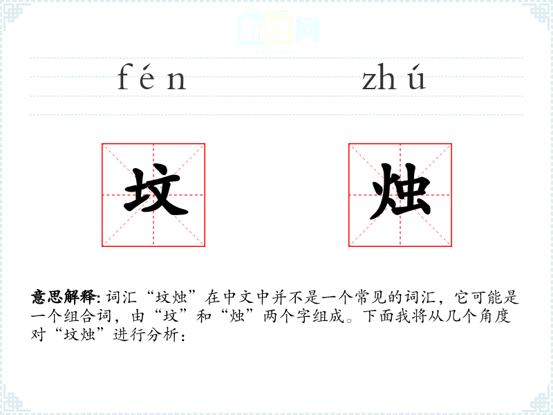 词汇“坟烛”在中文中并不是一个常见的词汇,它可能是一个组合词,由“坟”和“烛”两个字组成。下面我将从几个角度对“坟烛”进行分析:
