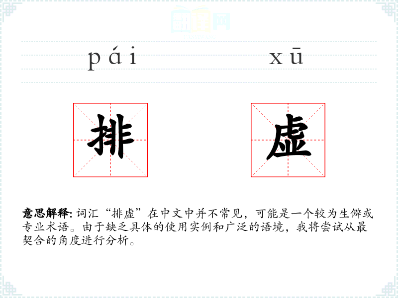 词汇“排虚”在中文中并不常见,可能是一个较为生僻或专业术语。由于缺乏具体的使用实例和广泛的语境,我将尝试从最契合的角度进行分析。
