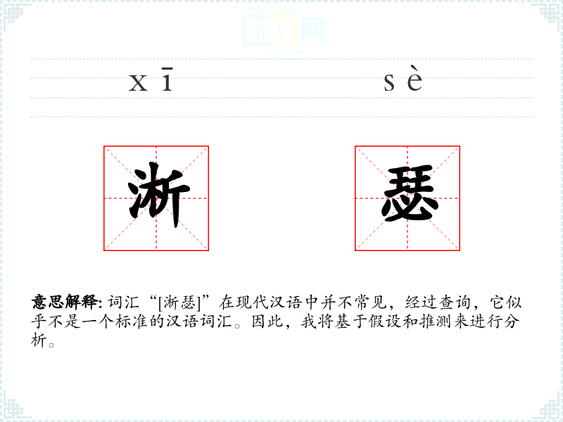 词汇“[淅瑟]”在现代汉语中并不常见,经过查询,它似乎不是一个标准的汉语词汇。因此,我将基于假设和推测来进行分析。