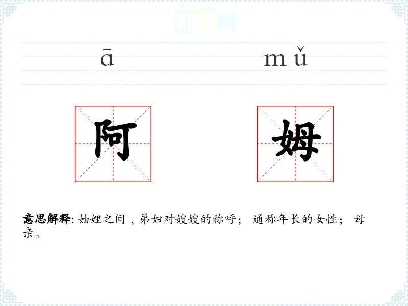 妯娌之间﹐弟妇对嫂嫂的称呼; 通称年长的女性; 母亲。