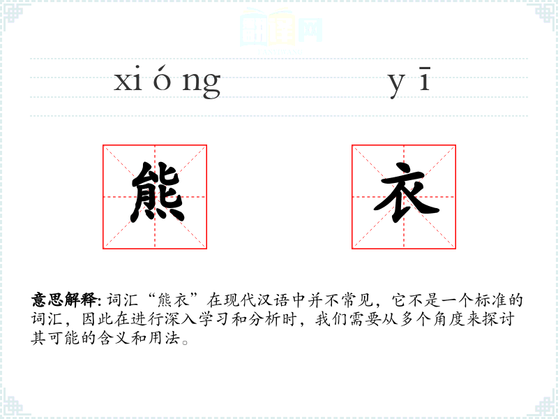 “熊衣”作为一个不常见的词汇,其含义和用法可能需要更多的上下文来确定。在语言学习和表达中,了解这样的词汇可以帮助我们更好地理解特定文化或社群的语言习惯。