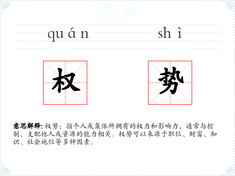 权势一词源于古代汉语,其中“权”指权力,“势”指形势或力量。随着社会的发展,权势的含义逐渐丰富,涵盖了更广泛的社会和政治意义。