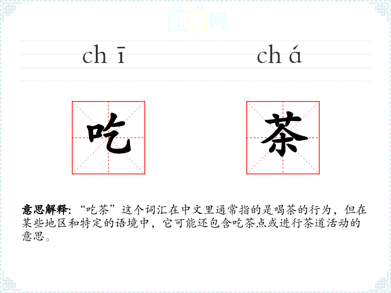 “吃茶”这个词汇在中文里通常指的是喝茶的行为,但在某些地区和特定的语境中,它可能还包含吃茶点或进行茶道活动的意思。