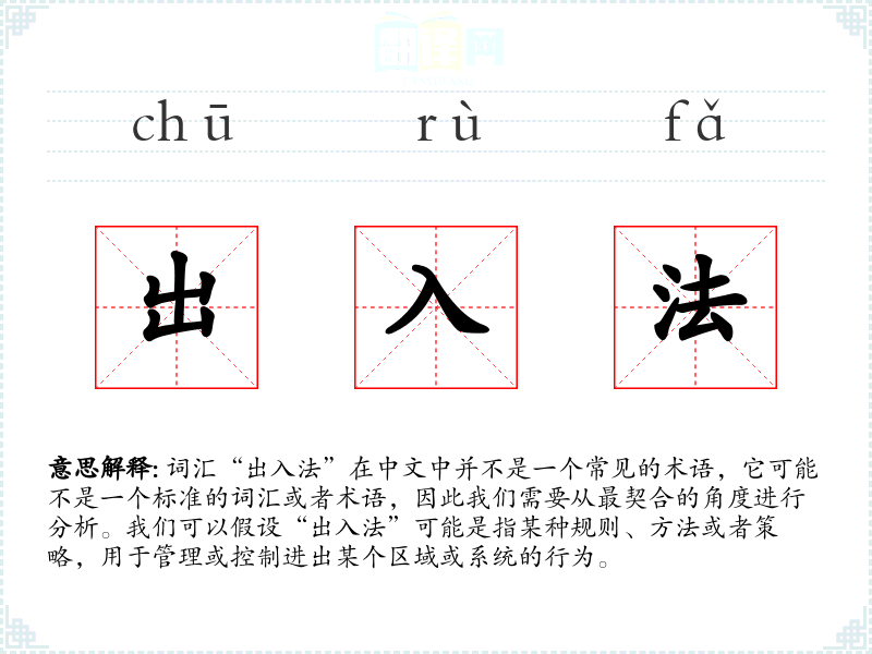 词汇“出入法”在中文中并不是一个常见的术语,它可能不是一个标准的词汇或者术语,因此我们需要从最契合的角度进行分析。我们可以假设“出入法”可能是指某种规则、方法或者策略,用于管理或控制进出某个区域或系统的行为。