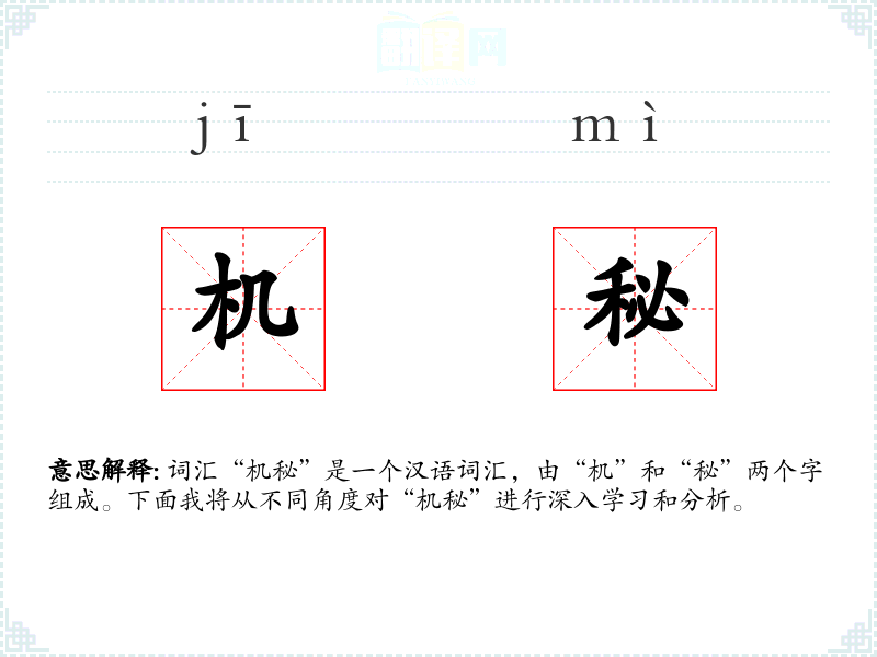 “机秘”字面意思是指机密、秘密,通常用来形容那些非常重要且不对外公开的信息或事物。在现代汉语中,它常用于政治、军事、商业等领域,指代那些需要保密的事项。