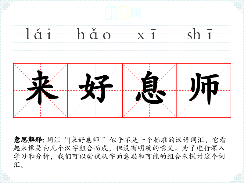 由于“[来好息师]”不是一个已知的词汇,我们可以尝试拆解每个字的意思: