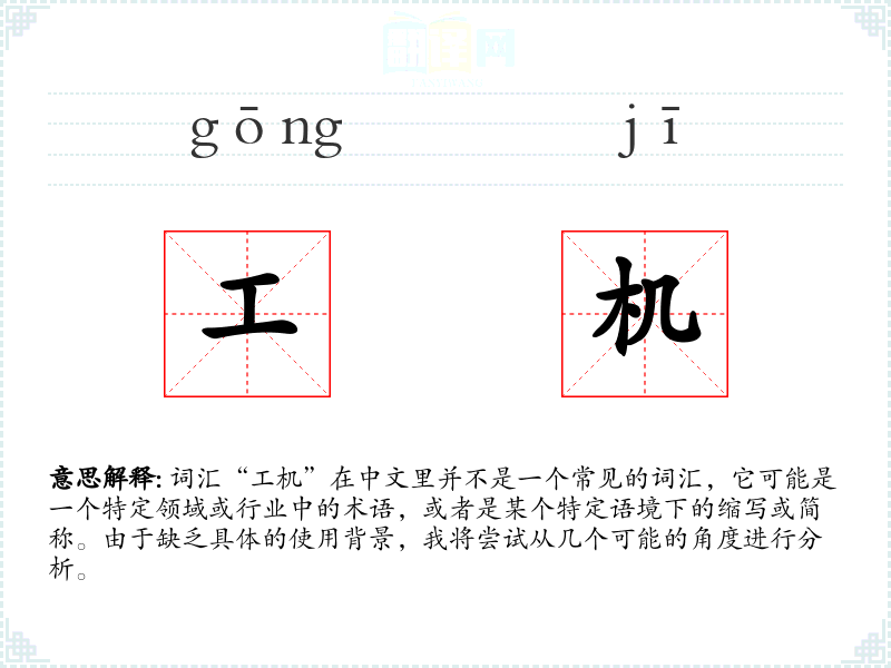 词汇“工机”在中文里并不是一个常见的词汇,它可能是一个特定领域或行业中的术语,或者是某个特定语境下的缩写或简称。由于缺乏具体的使用背景,我将尝试从几个可能的角度进行分析。