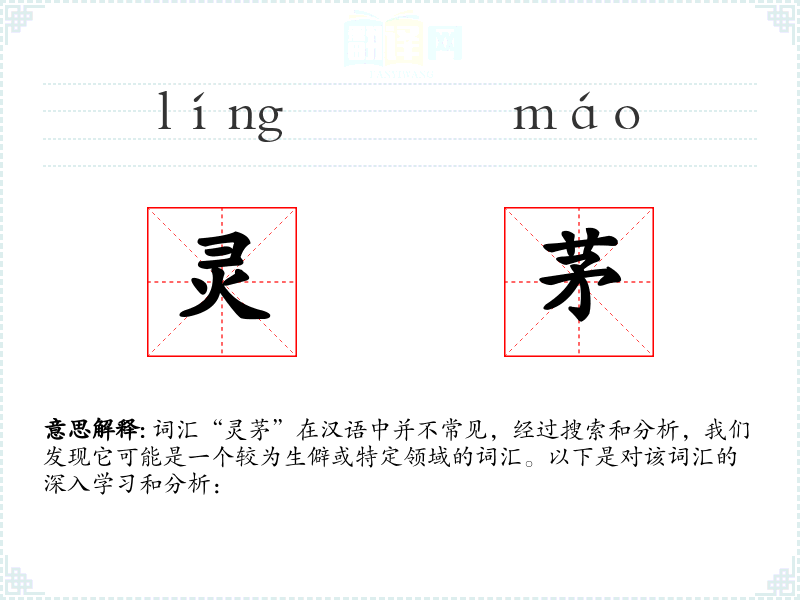 词汇“灵茅”在汉语中并不常见,经过搜索和分析,我们发现它可能是一个较为生僻或特定领域的词汇。以下是对该词汇的深入学*和分析: