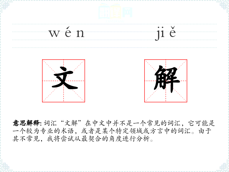 "文解"的意思解释、文解是什么意思由翻译网汉语词典查词提供。